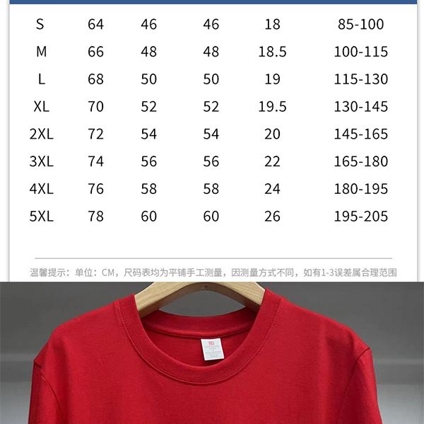 200克精梳棉/ 常规正肩款/不易缩水变形(2024年新款)