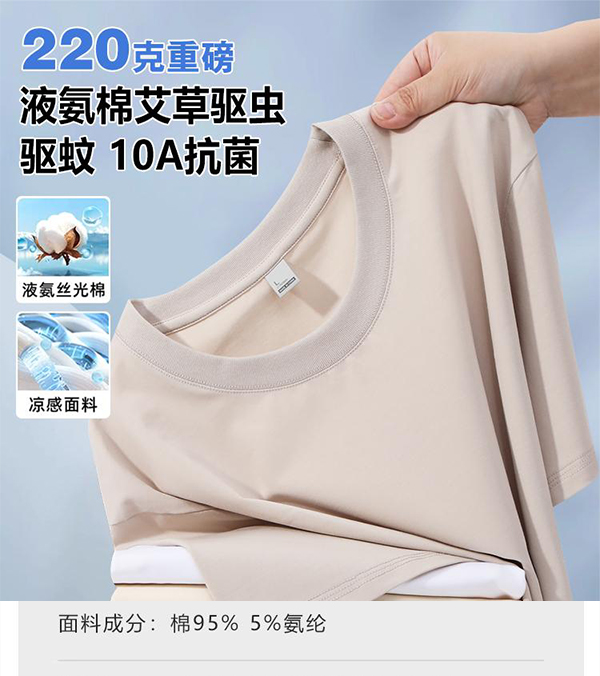 220克凉感液氨丝光纯棉圆领T恤(95%棉+5%氨纶)(2026年新款)