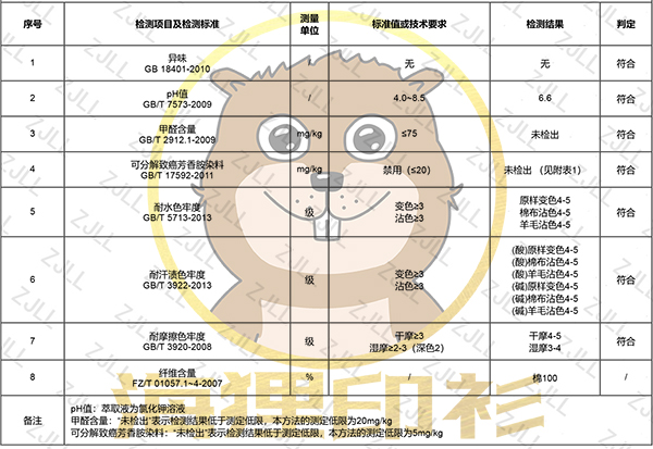 不论是在面料的选择或是打印材料的选择上,所呈现出来的成品都是符合服装的国家标准的,这一点希望大家放心,因为是由第三方检测机构所出具的检测报告,我们是不可能自己随意修改的,检测机构也要对他们的检测结果有法律的责任,所以他们也不会随随便便给出相应的数值。