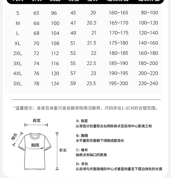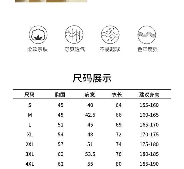 200克精梳棉/ 常规正肩款/不易缩水变形(2024年新款)