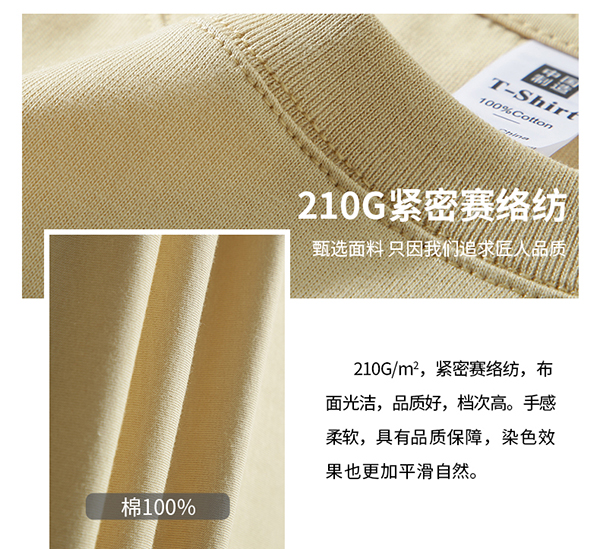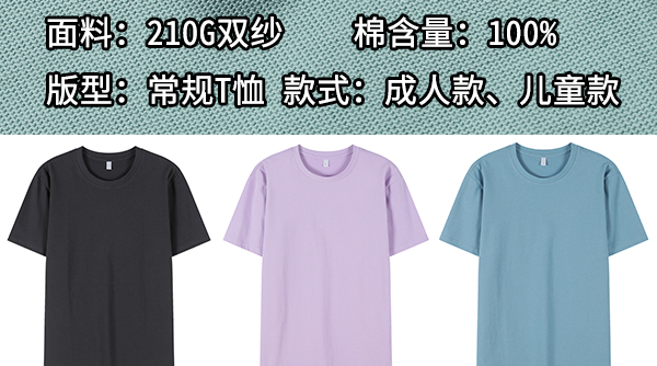 210克紧密赛络纺常规短袖圆领T恤(100%棉)(2023年新款)