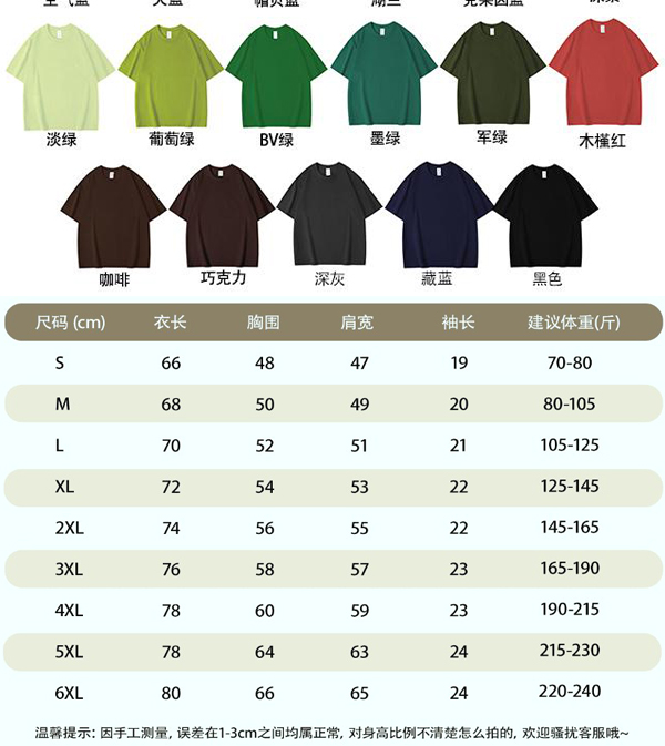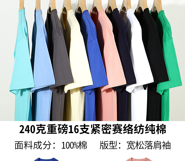 *新品推荐*240克重磅*紧密赛络纺*全棉落肩袖T恤41色可选