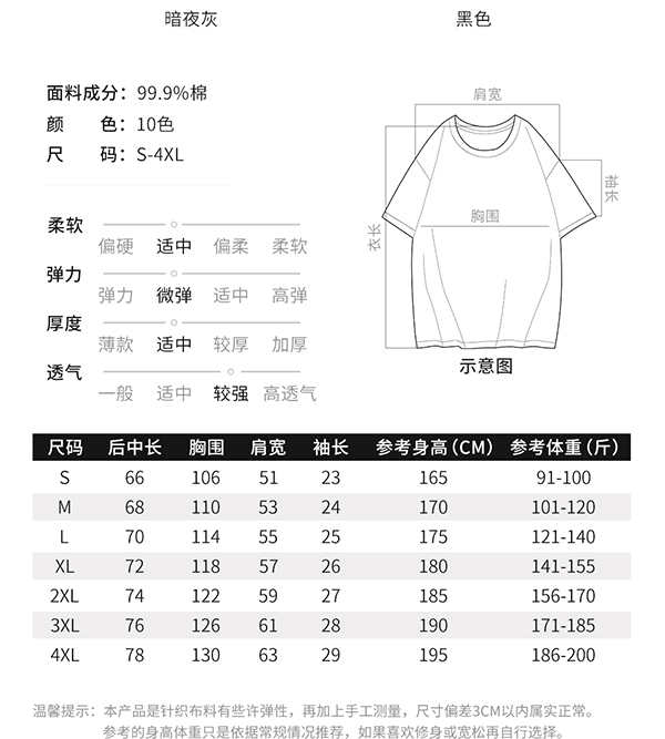 100%全棉落肩袖T恤220g厚度